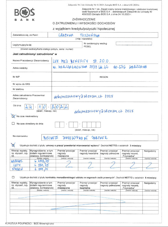 Tak zwane ZZZ - Zaświadczenie o Zatrudnieniu i Zarobkach