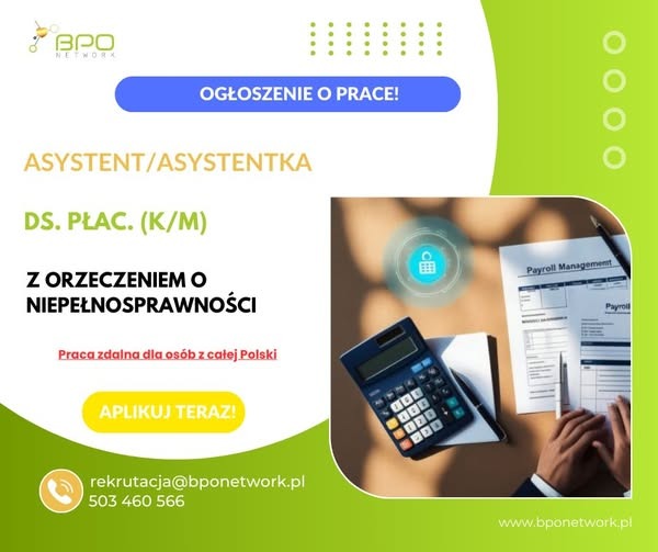 Asystent/Asystentka ds. płac. (K/M) z orzeczeniem o niepełnosprawności