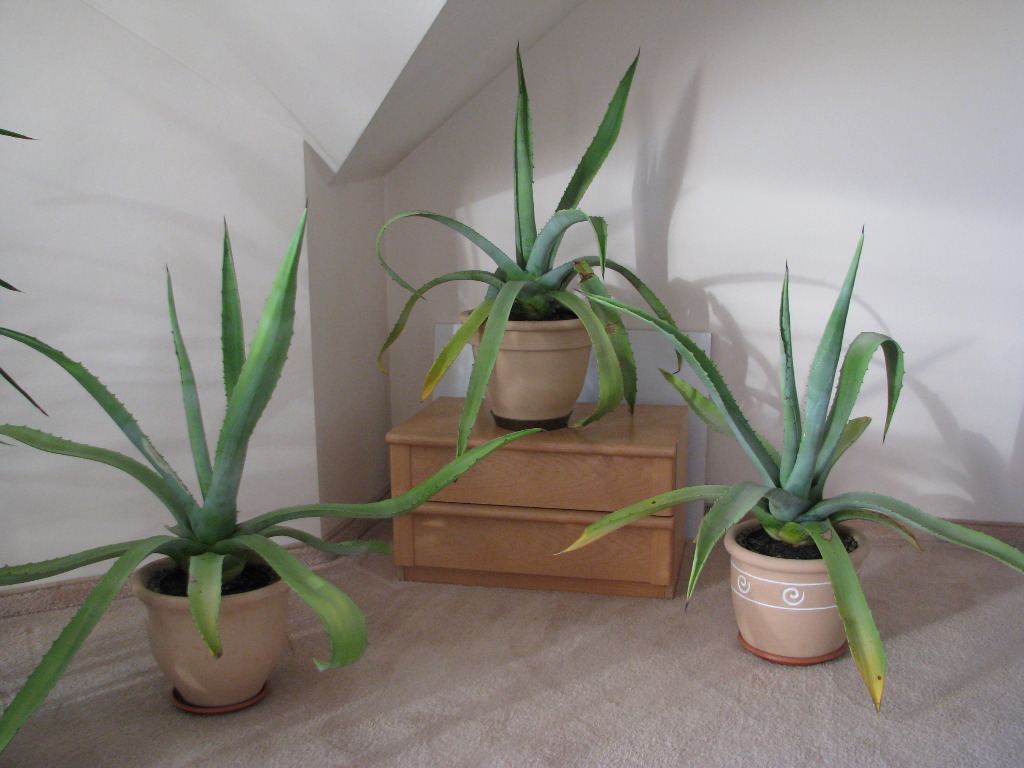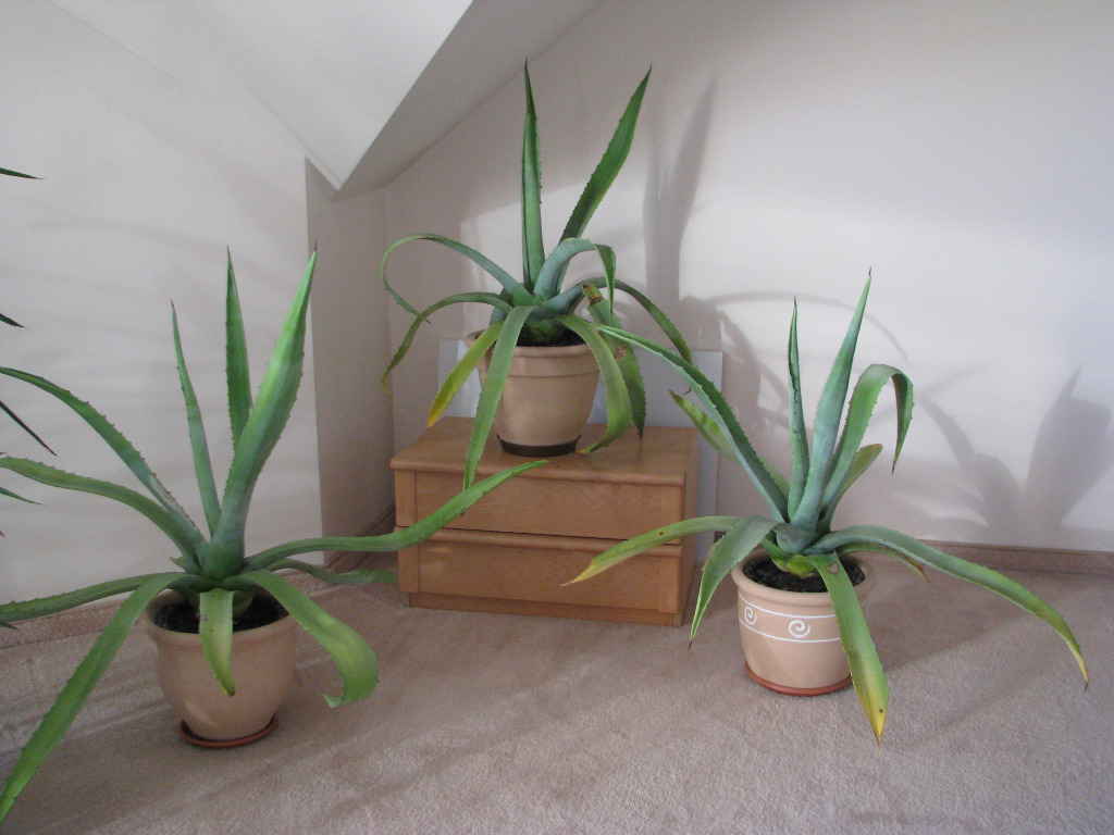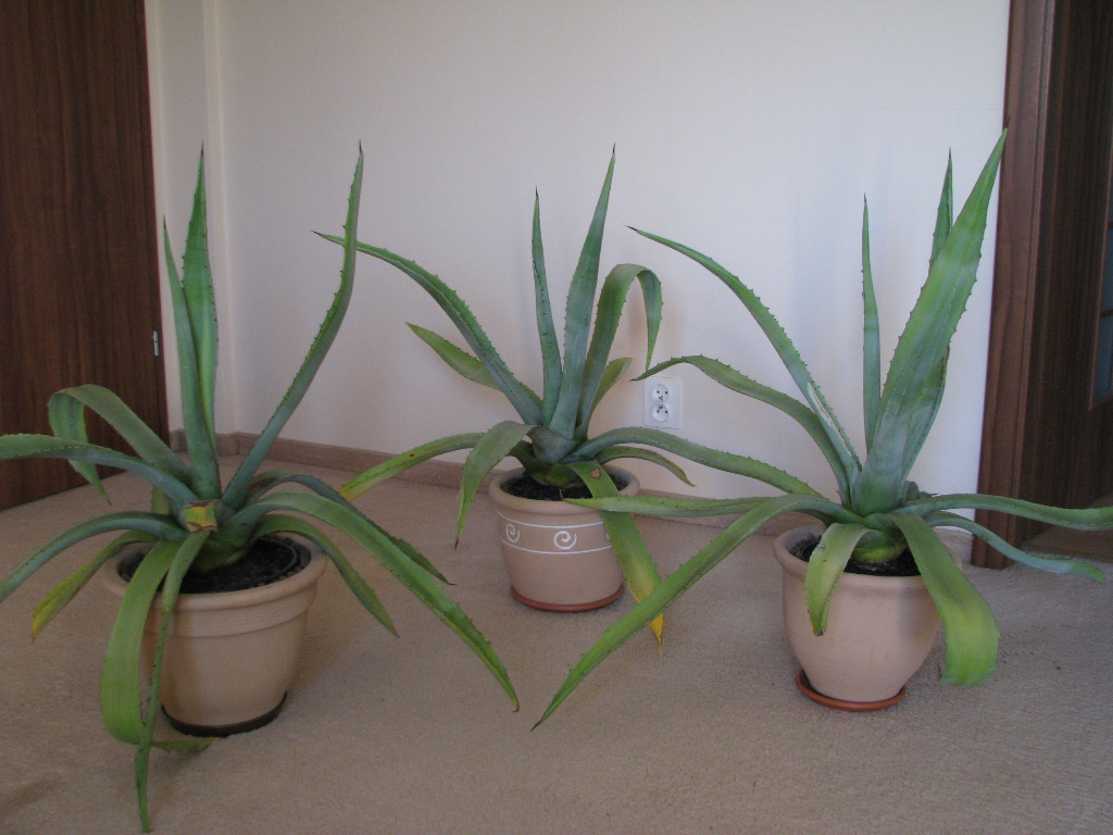 Agawy mają już sporo lat, mają około 85 cm wysokości i 80-100 cm rozpiętości. Są mocne, zdrowe i zahartowane – wyhodowane od małego w warunkach mieszkaniowo-tarasowych, które im służą.