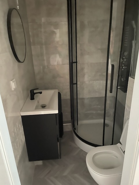 Łazienka – nowoczesna, z przestronną kabiną prysznicową.