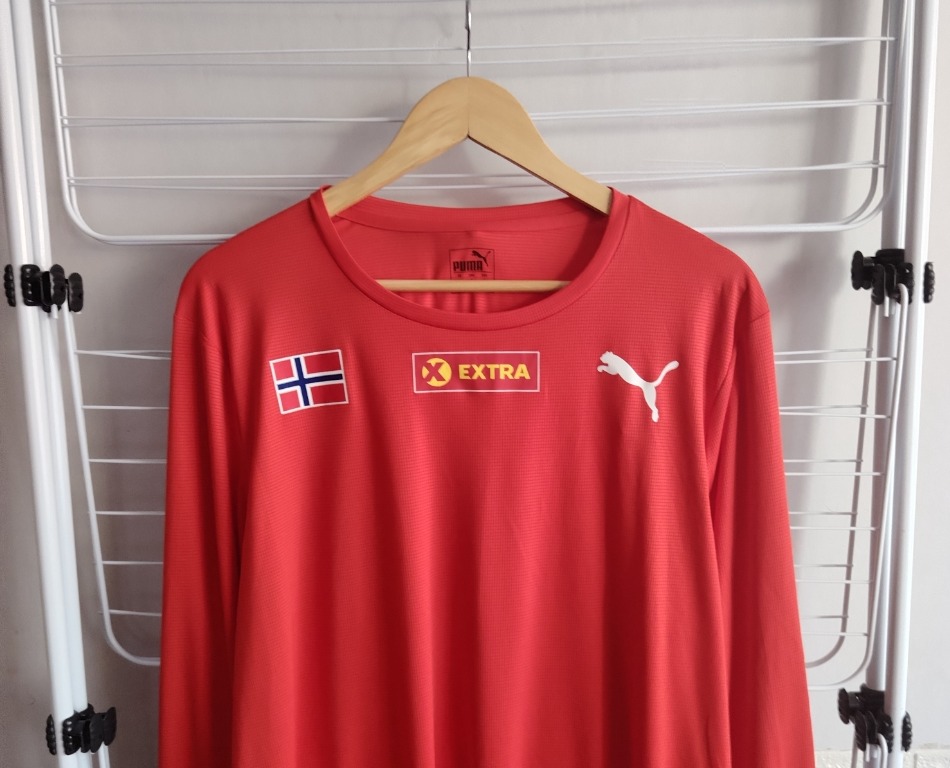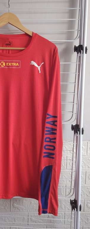Koszulka sportowa/treningowa firmy Puma rozmiar z metki L. Materiał: 100 % poliester. Bluzka nowa z metką.Wymiary: *szerokość mierzona od pachy do pachy 57 cm *długość rękawa mierzona od pachy 57 cm *długość całkowita 75 cm Wystawiam na Olx i Vinted.