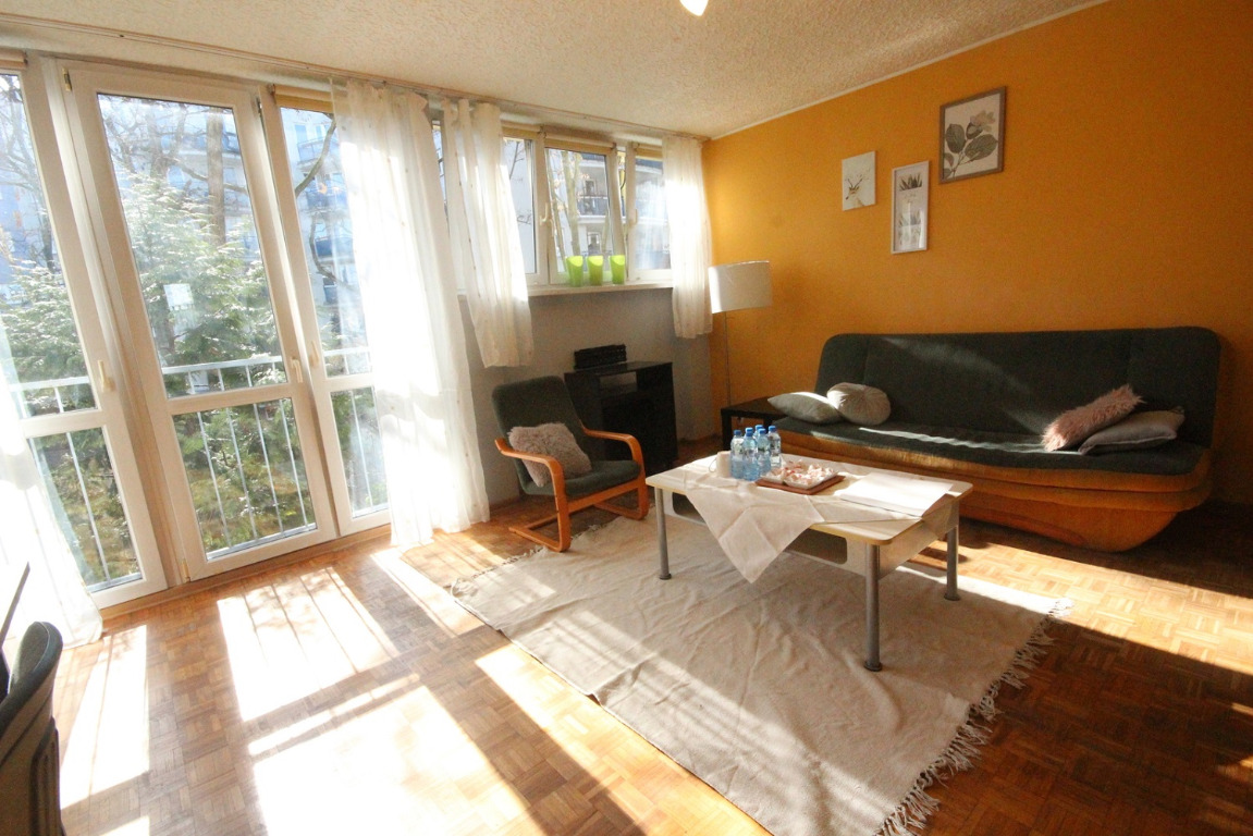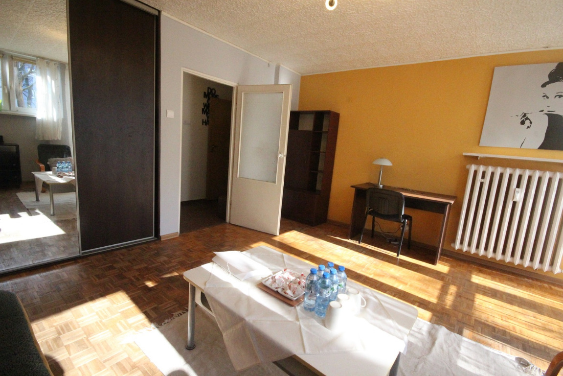 Ciche mieszkanie 2-pokojowe dwustronne w pełni rozkładowe na pierwszym piętrze w zadbanym, niskim bloku z ogrzewaniem miejskim na bliższych Krzykach.
