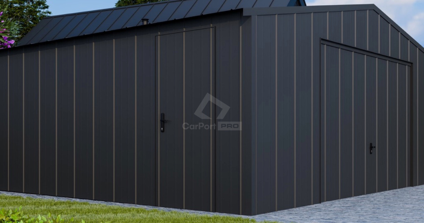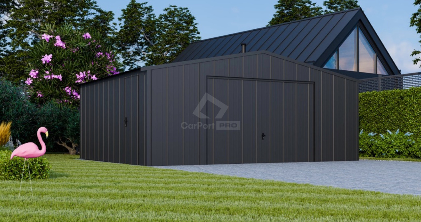 dach: dwuspadowy, pokryty blachą na rąbek, kolor: antracyt mat 7016