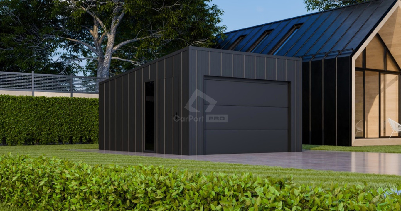 dach: spad w tył, pokryty blachą na rąbek, kolor: antracyt mat 7016