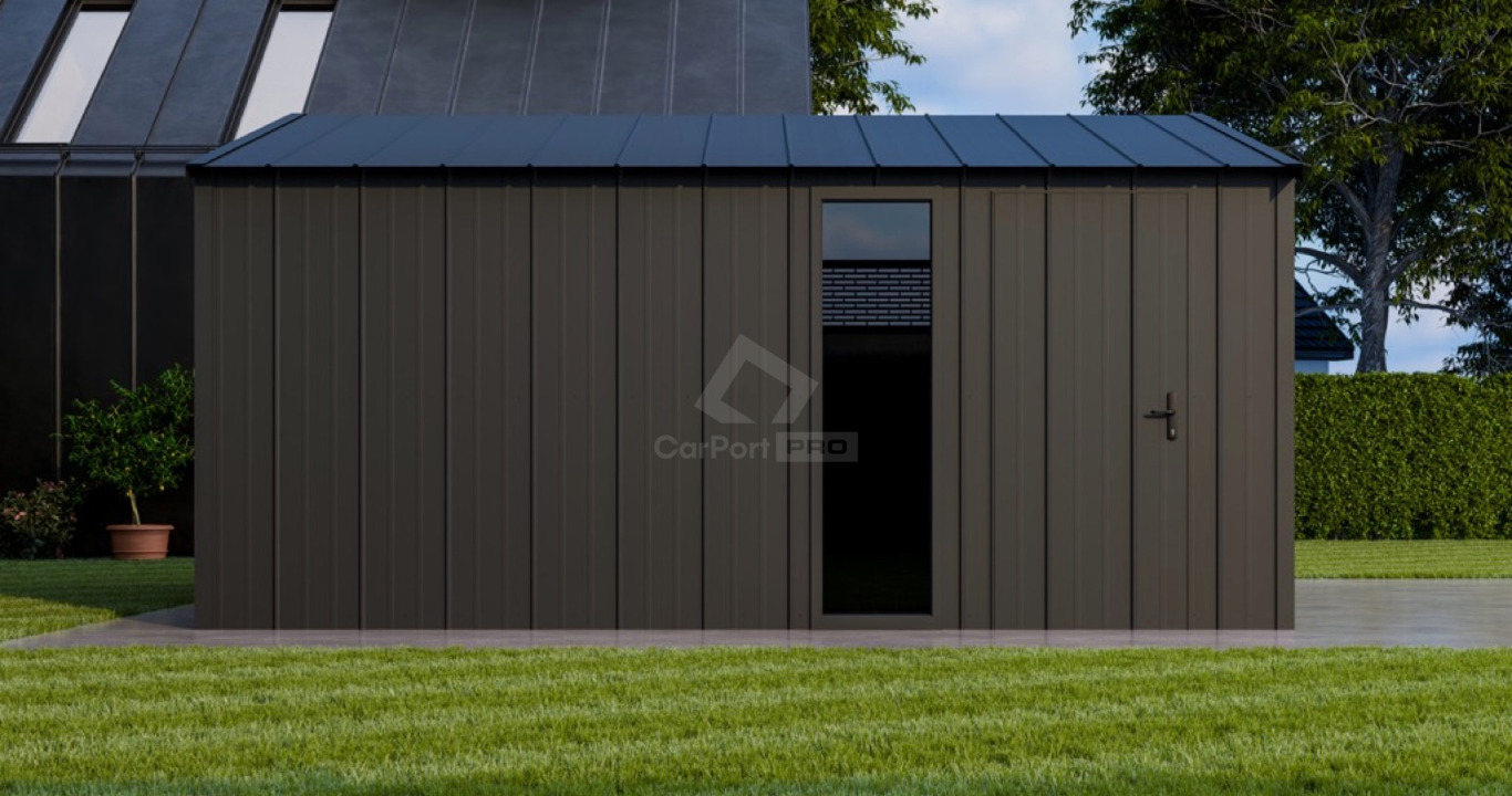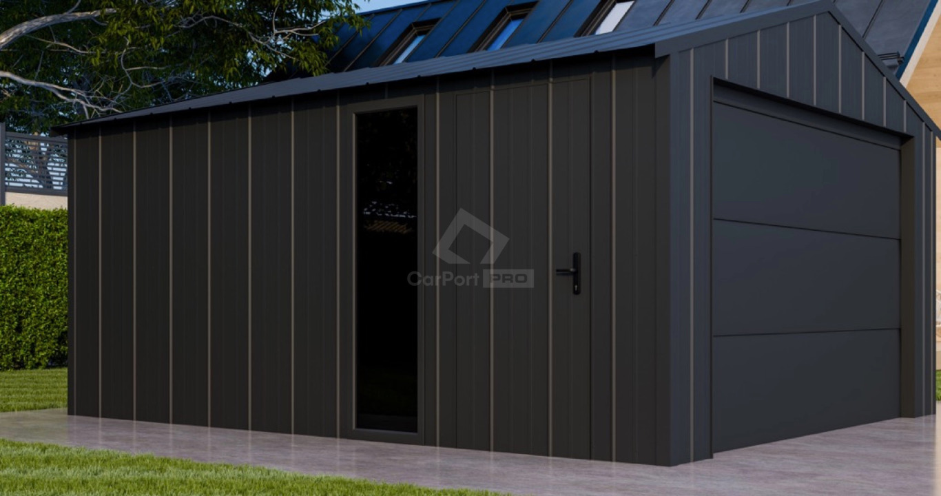 dach: dwuspadowy, pokryty blachą na rąbek, kolor: antracyt mat 7016