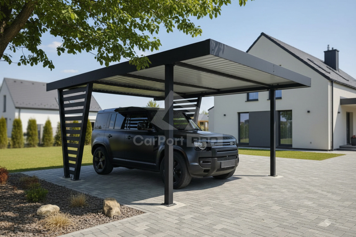 Carporty stalowe to praktyczne i trwałe rozwiązanie dla ochrony samochodu przez cały rok. Solidna konstrukcja zapewnia doskonałe zabezpieczenie przed śniegiem, wiatrem i intensywnymi opadami deszczu. Zabezpiecza także przed gradem, opadającymi liśćmi czy żywicą spadającą z drzew i odchodami ptaków. Carport chroni samochód przed promieniowaniem UV, które powoduje blaknięcie lakieru i niszczenie elementów wnętrza. Dzięki temu samochód jest mniej podatny na uszkodzenia i zabrudzenia a codzienne użytkowanie staje się wygodniejsze.