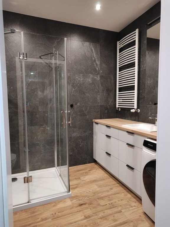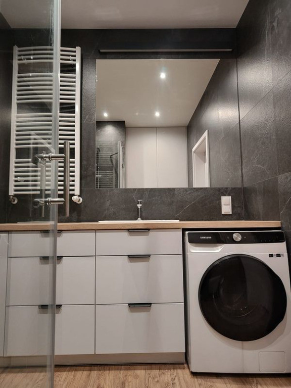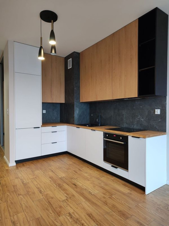 Powierzchnia: 40,90 m²Piętro: 2Rozkład pomieszczeń:Salon z aneksem kuchennym: 20,22 m²Sypialnia: 10,72 m²Łazienka: 5,49 m² (z pralko-suszarką)Przedpokój: 4,47 m²Balkon: 3,9 m²Wysokość pomieszczeń: Ponad standardowa – 2,8 mOkna: Duże, skierowane na stronę wschodniąWykończenie:Meble wykonane na wymiarKafle z firmy Tubadzin w łazience i na podłogachDodatkowe informacje: