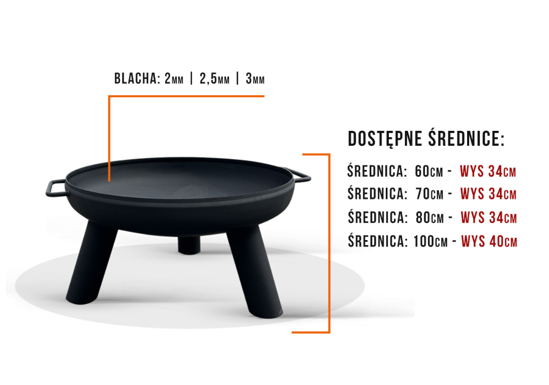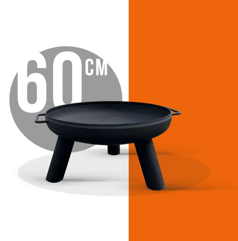 Palenisko o średnicy 60 cm, wykonane z 2-mm grubości surowej stali, pokrytej czarną farbą żaroodporną, zapewnia wytrzymałość i odporność na deformację. Wysokość 34 cm gwarantuje stabilność i bezpieczne użytkowanie.