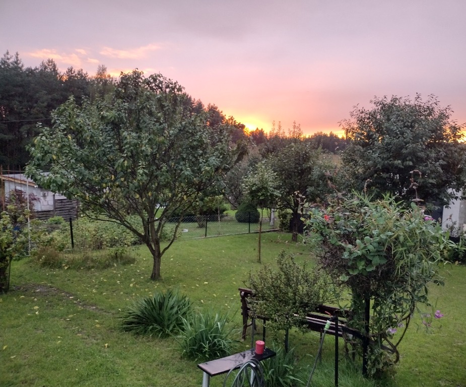 Działka jest ogrodzona i w pełni zagospodarowana, z licznymi nasadzeniami: krzewami ozdobnymi i owocowymi, kwiatami oraz drzewami owocowymi, m.in. śliwa, pigwa, wiśnia, jabłoń, agrest, winogrono, maliny, borówki.