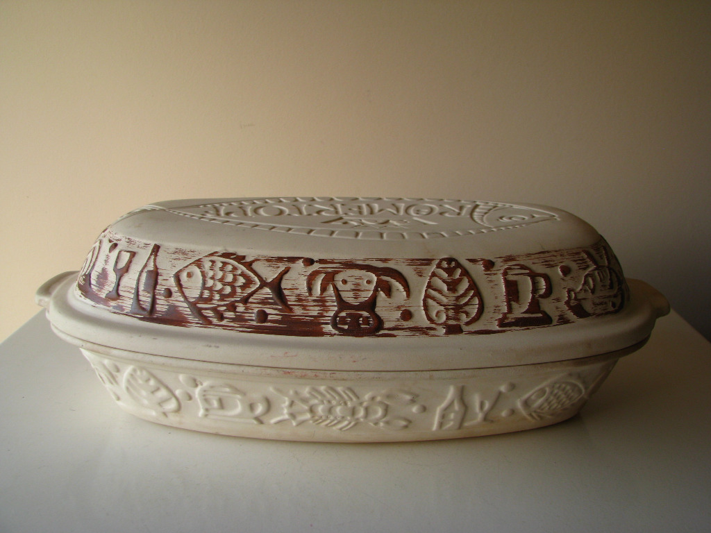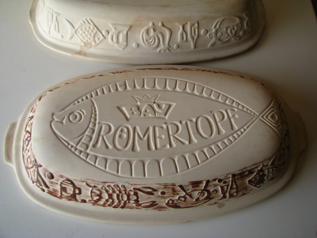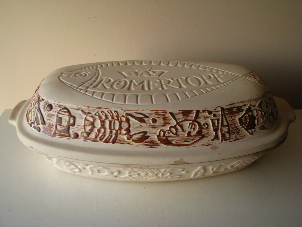 Sprzedam oryginalny, duży garnek rzymski marki Römertopf (W-Germany), model 114, wyprodukowany przez wytwórnię Bay Keramik w Zachodnich Niemczech.