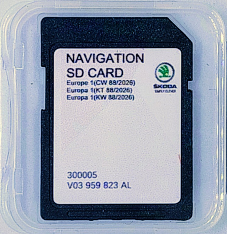 Karty nowe, nieużywane z najnowszą dostępną wersją map na rok 2026. Zalecana przez Skodę pojemność kart 32GB.