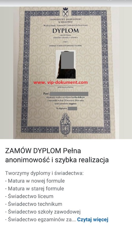 Oferujemy dyplomy wszystkich polskich uczelni:
