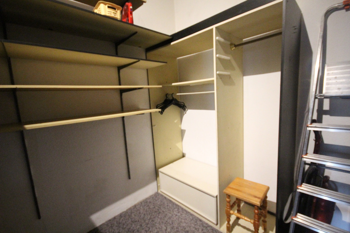 - drugi pokój za przesuwnymi lustrami posiada garderobę z półkami i drążkami