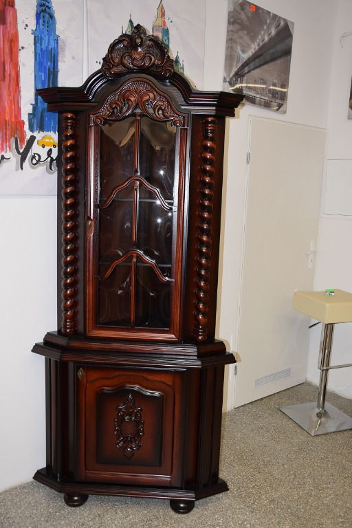 sprzedam piękną i stylową witrynę narożną - witryna wykonana z drewna dębowego,stan idealny jak nowa,cena do małej negocjacji