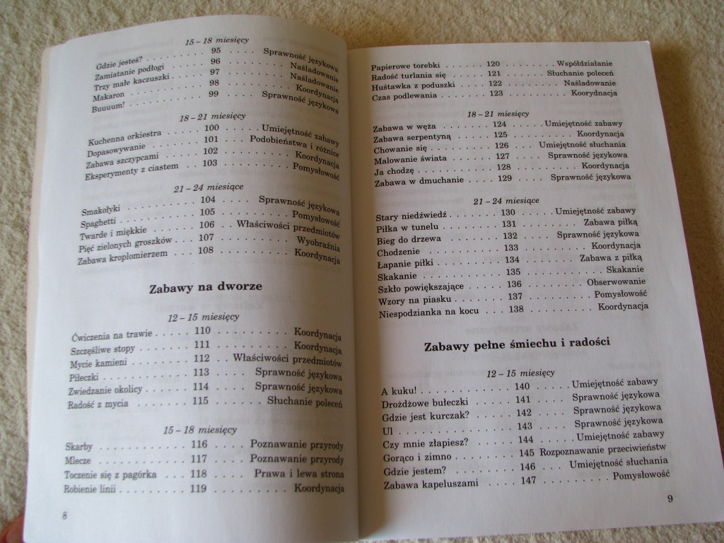 Książka o zawiera 263 strony w tym 234 pomysły zabaw, które sprawiają wiele radości zarówno dzieciom, jak i dorosłym.
