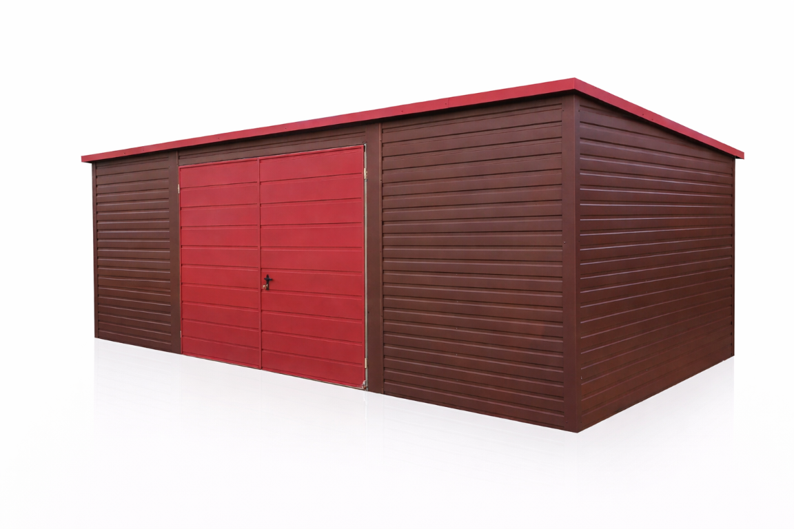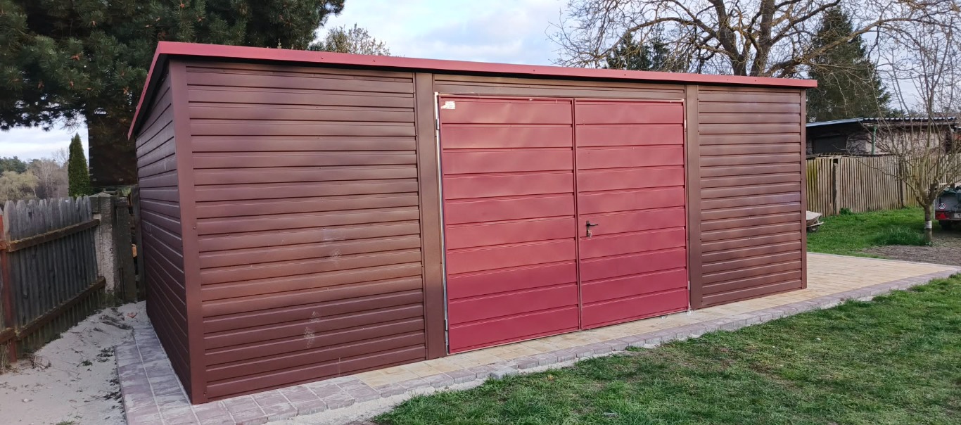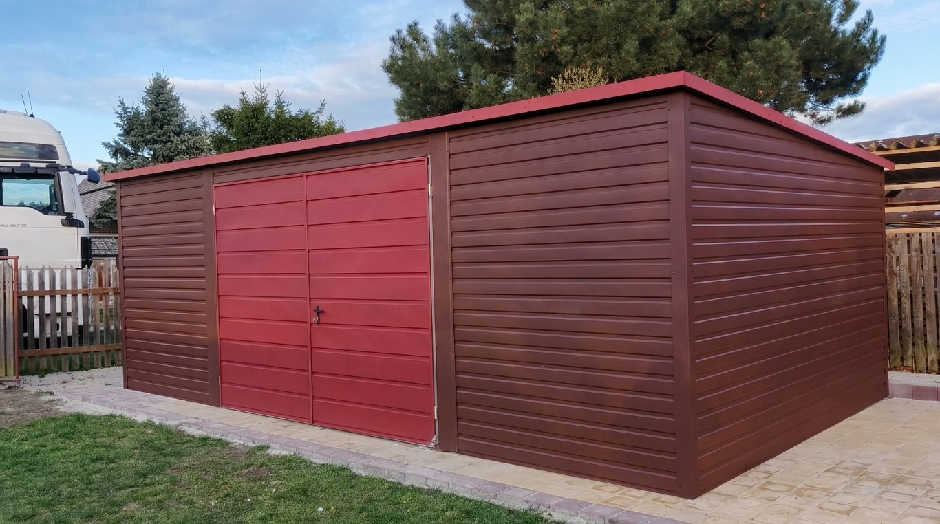 Nowoczesny garaż blaszany PREMIUM o wymiarach 7x4 Ciemny Brąz MAT + Jasna Wiśnia
