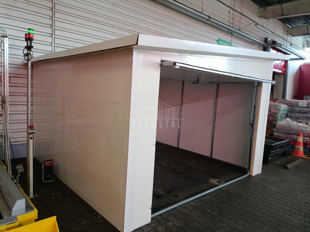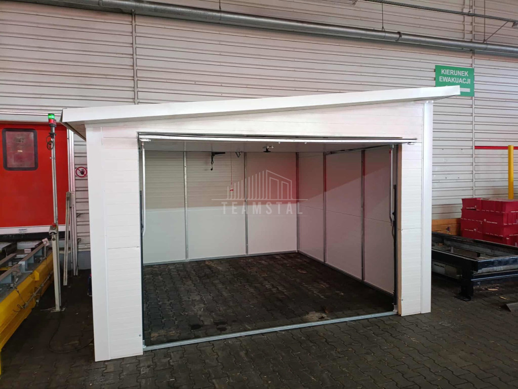 dach : spad w bok wykonany z płyty warstwowej gr. 6 cm kolor : biały RAL 9010