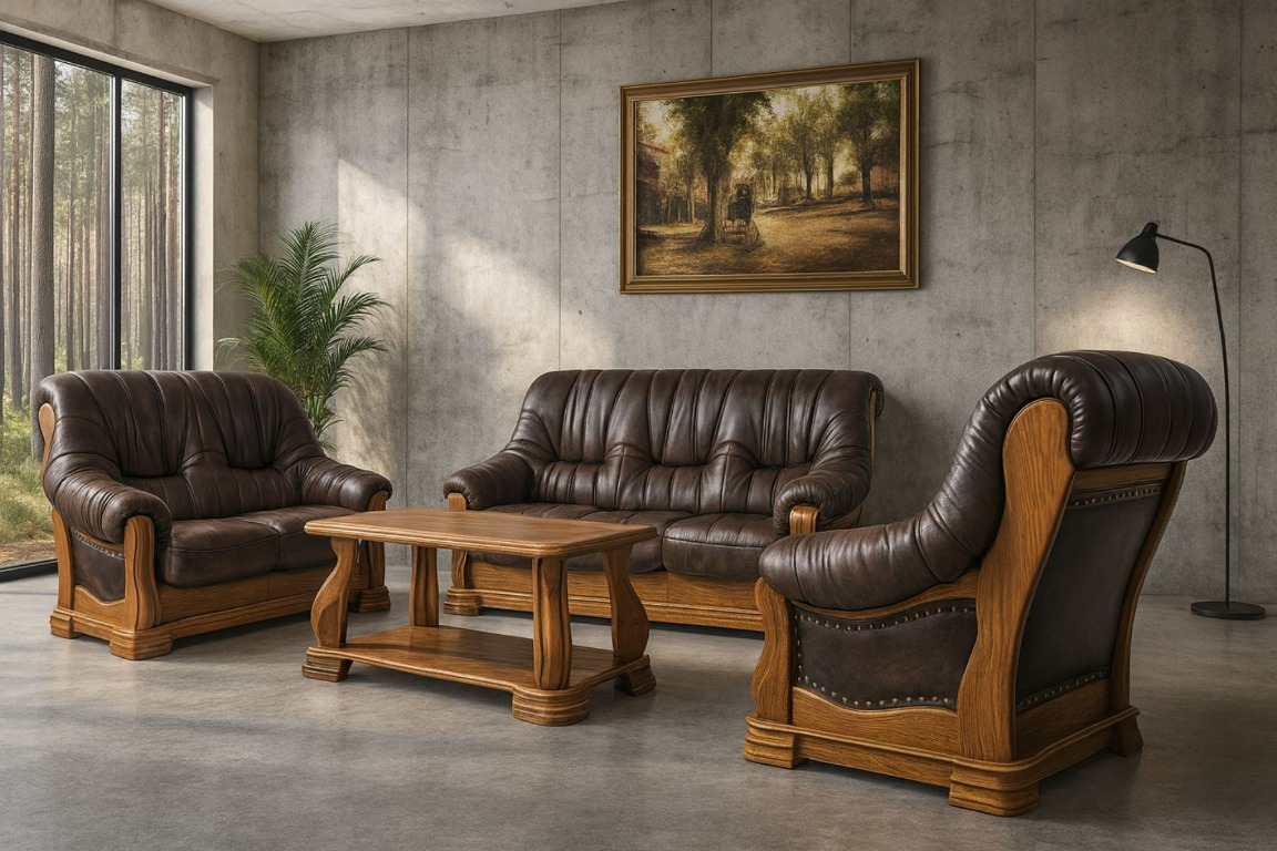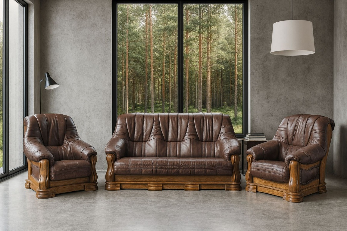 PATRYCJA to wyjątkowe połączenie jakości i stylu. Szeroka paleta kolorystyczna zarówno skóry jak i tkaniny podkreśla wyjątkowość tego rozwiązania. Zachwyci Cię również ogromny wybór kolorystyki drewna. Dzięki tak wysokiej jakości kompletu wypoczynkowego wreszcie osiągniesz pięknie zaaranżowane wnętrze a to przy niewielkich kosztach.