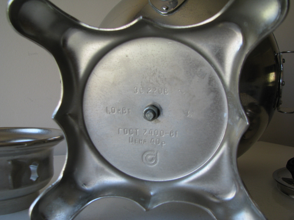 Sprzedam stary, oryginalny samowar elektryczny wyprodukowany w ZSRR z sygnaturą umieszczoną na spodzie podstawy.