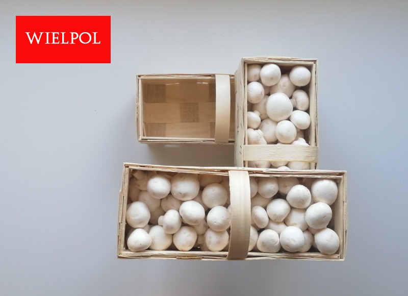 Sprzedaż drewnianych koszyków do białych pieczarek .