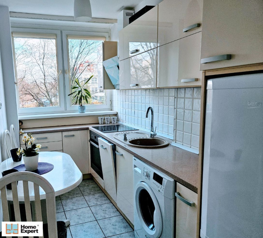 Stan: Mieszkanie do odświeżenia, było wynajmowane, jak na zdjęciach, ale do wprowadzenia (budynek z 1971 roku, wielka płyta). Instalacja miedziana, kuchnia w zabudowie (wysoki połysk), sprzęty działające (indukcja, zmywarka, pralka i lodówka, wszystko firmy Beko) i wszystko zostaje.